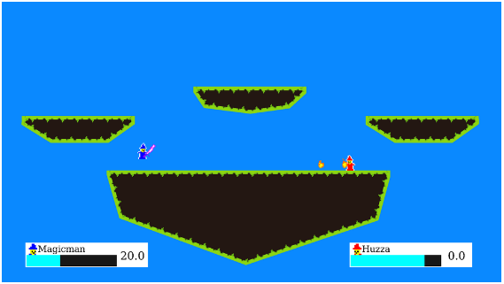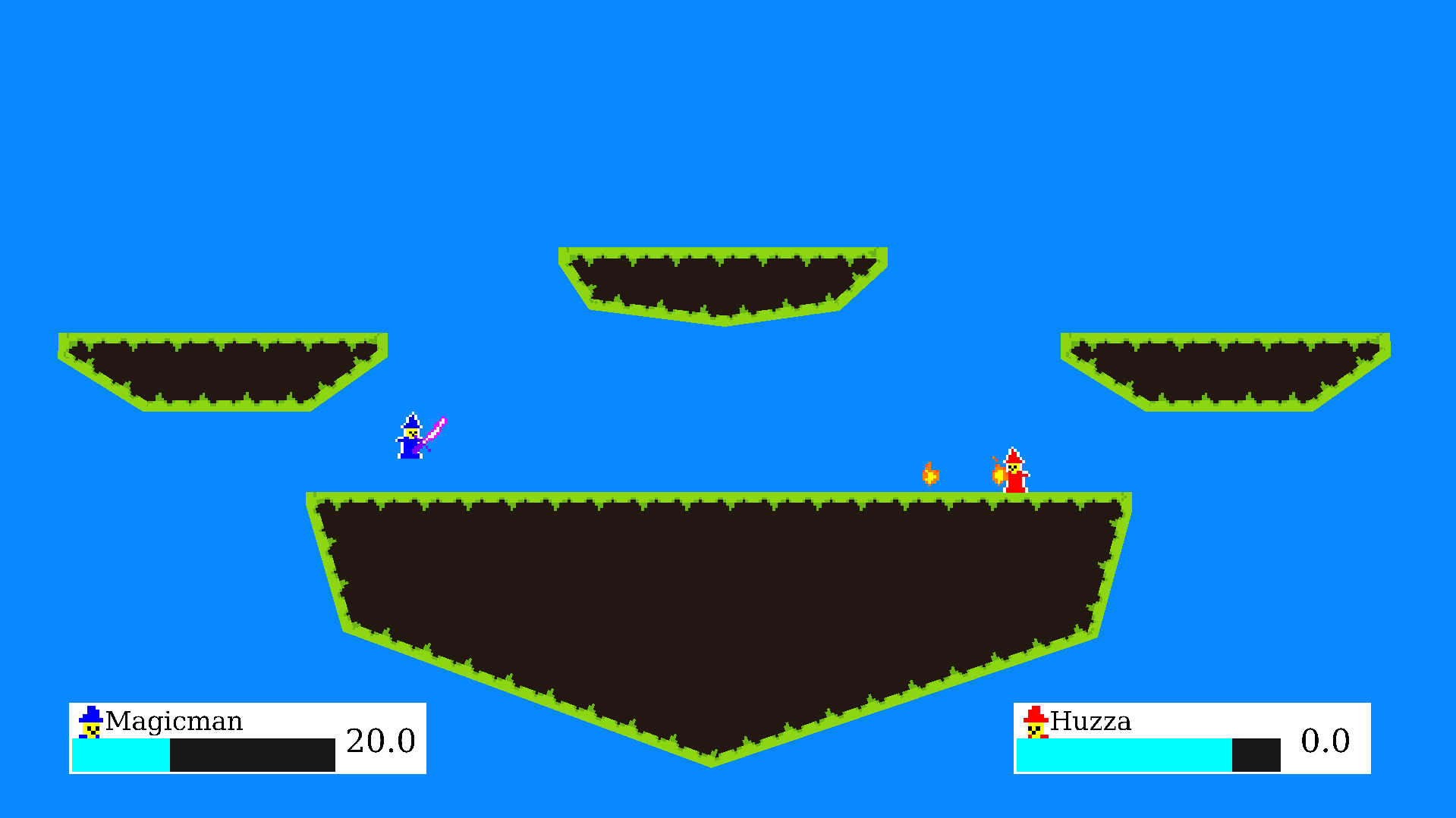 MAGEDUEL is a little local multiplayer fighting game where you play as two mages trying to destroy the other. its smash-style but you also have a mana bar to manage.