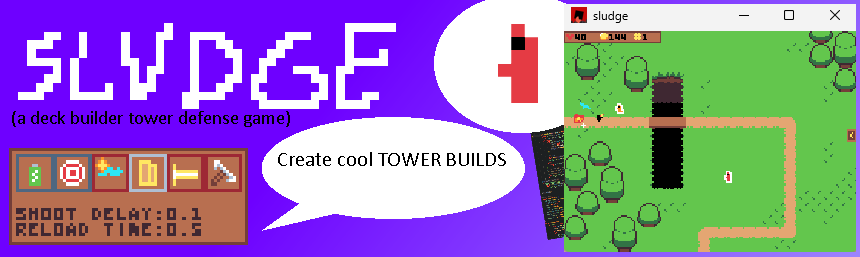 Sludge is a tower defense game written in rust with "deck building" mechanics like Noita's wand building.
